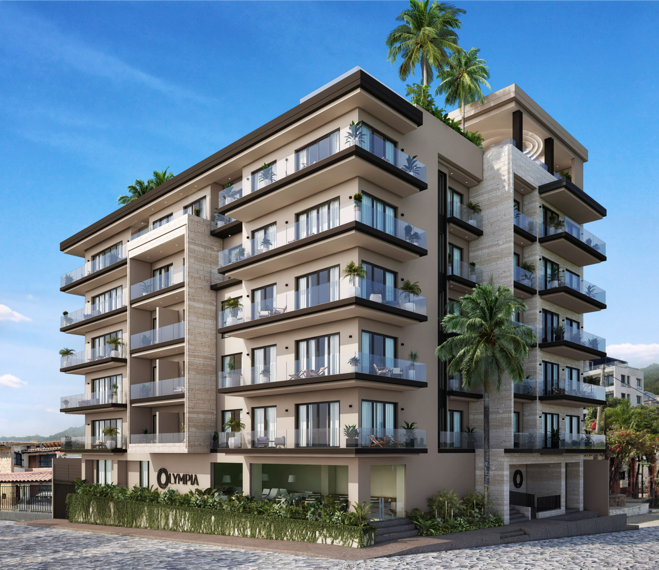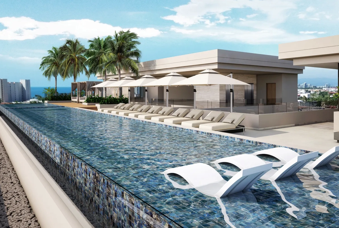 Descubre Olympia, un desarrollo inmobiliario de primer nivel en Puerto Vallarta que ofrece condominios de lujo en venta en el corazón de la vibrante colonia 5 de Diciembre, en el centro de Puerto Vallarta. El desarrollo de siete pisos, con azotea, ofrece 36 residencias que van desde 60 m² hasta 150 m², con opciones de una o dos recámaras y hasta 2.5 baños. Cada espacio en Olympia cuenta con vistas e iluminación natural, por lo que las habitaciones están bañadas de luz natural gracias a sus amplios ventanales, que combinan a la perfección comodidad y estilo. Algunas de las unidades más exclusivas cuentan con terrazas privadas.